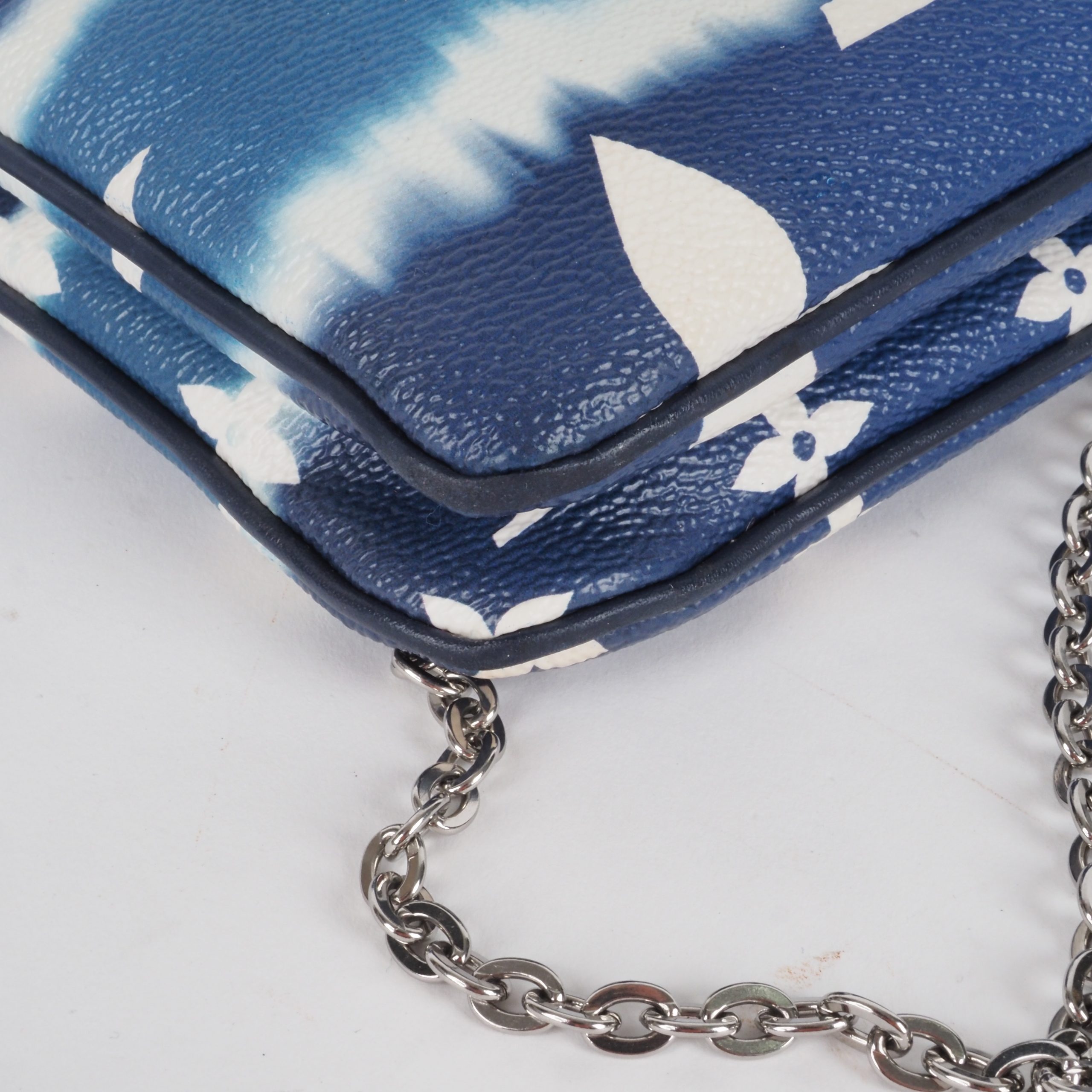 This beautiful little Escale double zip pochette with a long chain was made in France in 2020. It shows slight signs of wear, but is clean inside and out and free of odors.