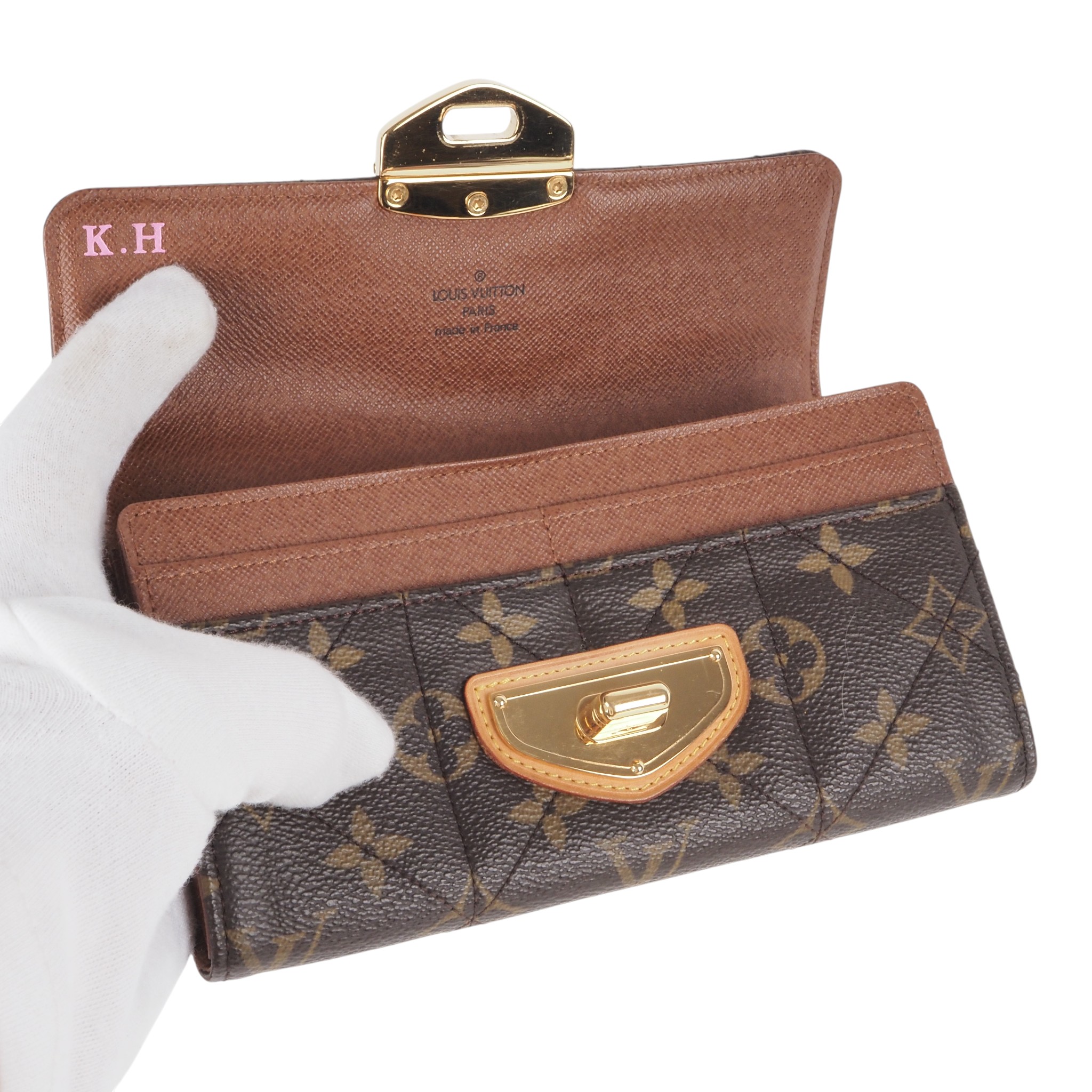This beautiful, rare Sarah Etoile wallet by Louis Vuitton was made in France in 2009. It is in very well-maintained, almost mint condition. It features the initials KH inside.