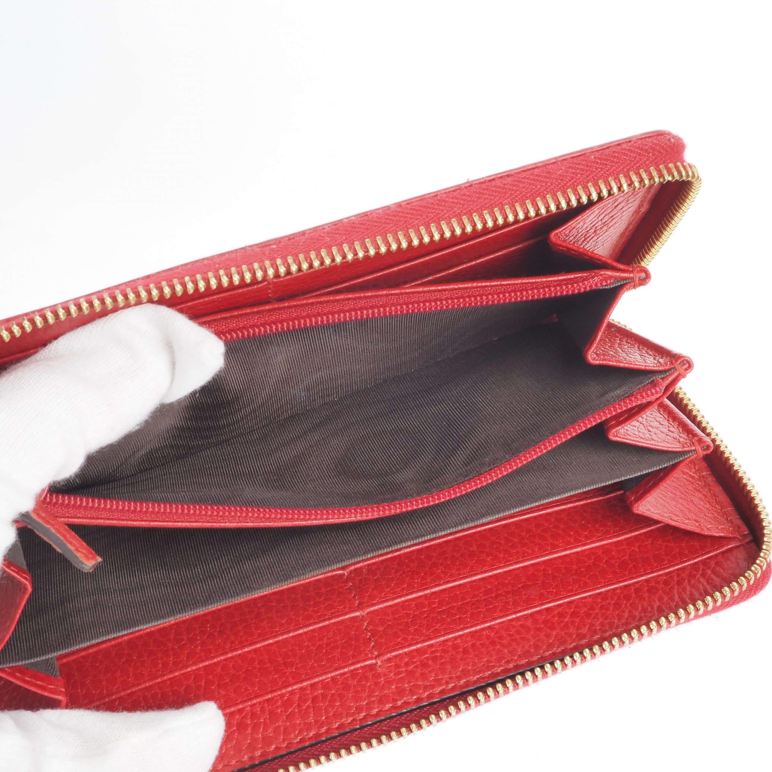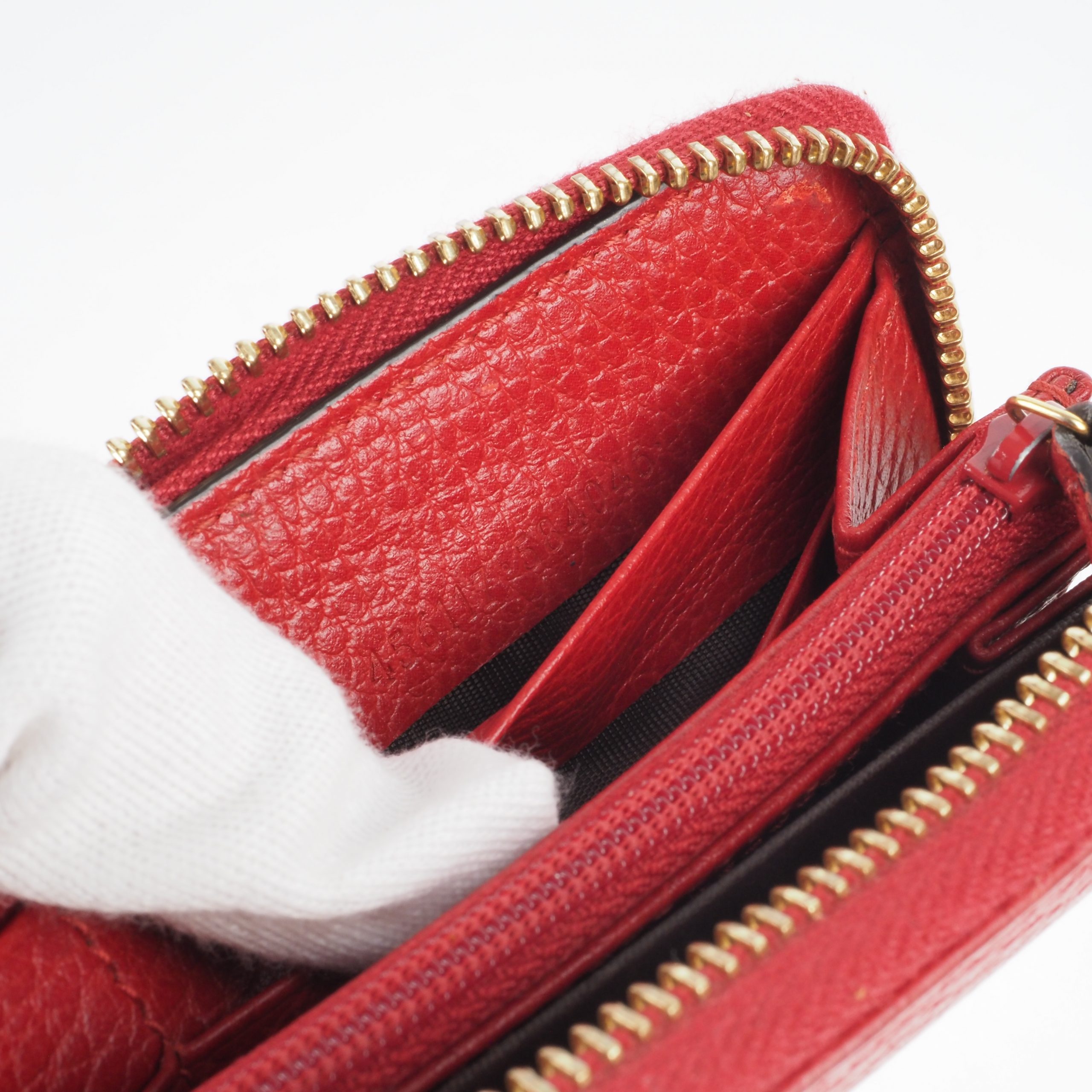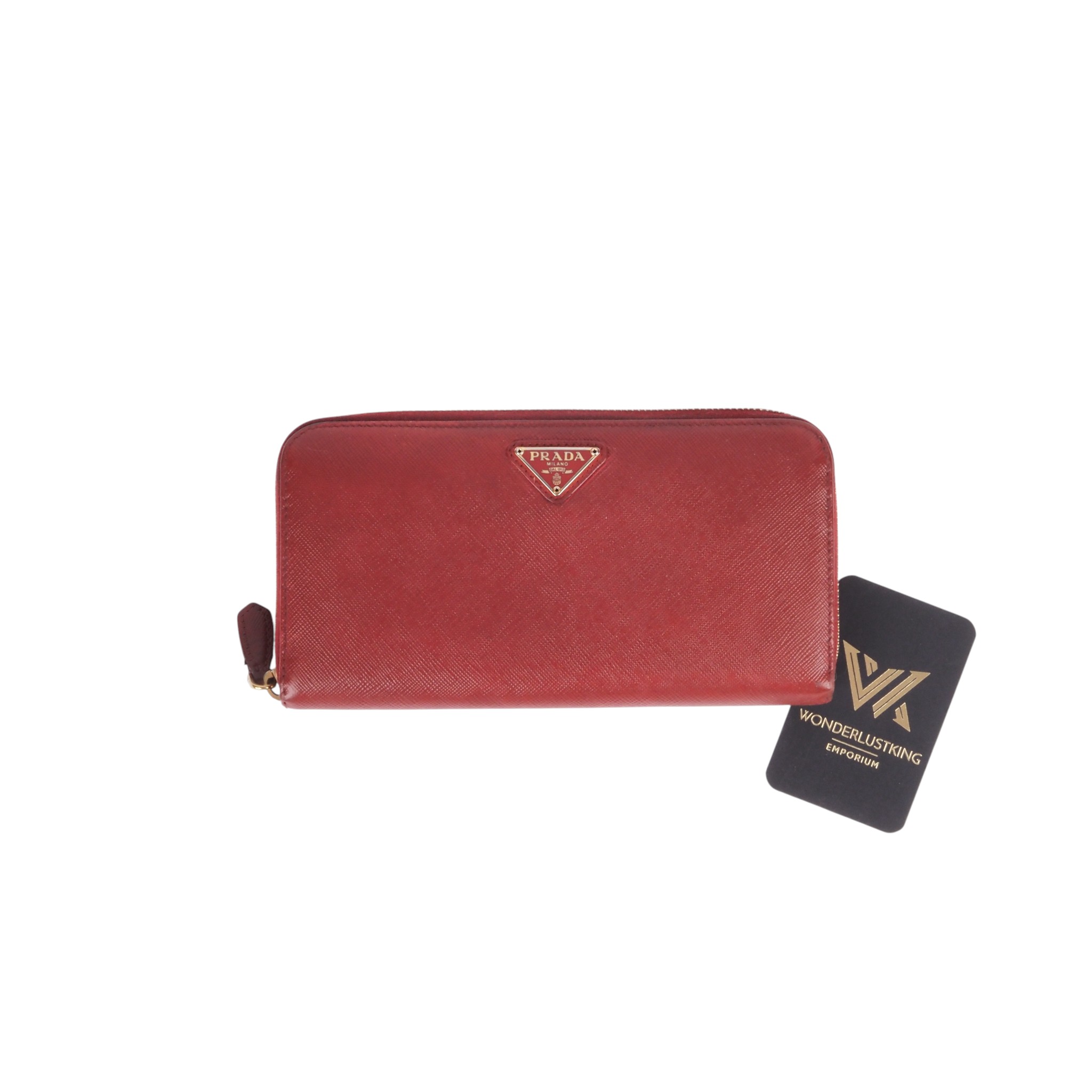 Geldbörse mit Reißverschluss aus Saffiano, einem ikonischen Prada Material: Kalbsleder von höchster Qualität mit kreuzschraffierter Struktur und gewachstem Finish. Der Logo-Schriftzug ziert das Accessoire. Innen und außen gepflegt mit leichten Gebrauchspuren außen. 8 Kartenfächer, 4 Scheinefächer und 1 Münzfach.