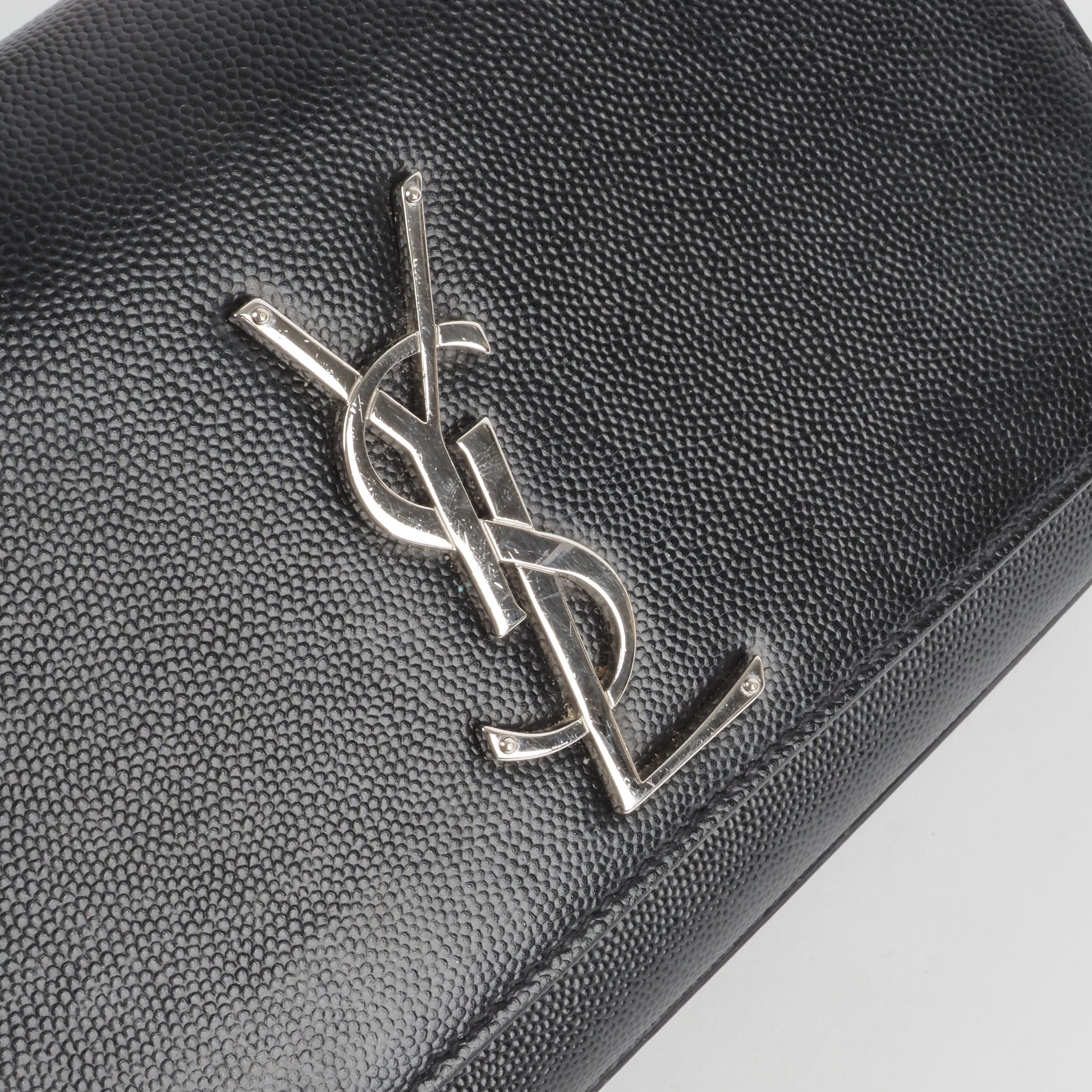 Diese wunderschöne kleine Kate Schultertasche von Saint Laurent wurde aus robustem, metallfrei gegerbten Leder mit Grain-de-poudre Struktur gefertigt. Hergestellt im 2021 in Italien. Die Tasche ist in gepflegtem Zustand, innen und außen sauber und frei von Gerüche, mit minimalen Gebrauchspuren.
