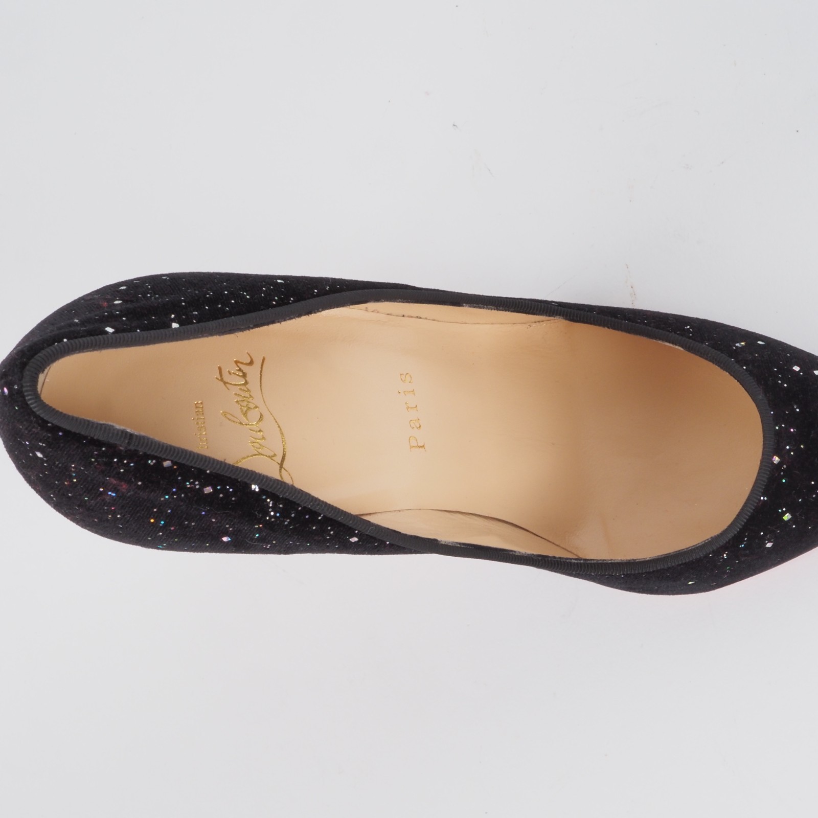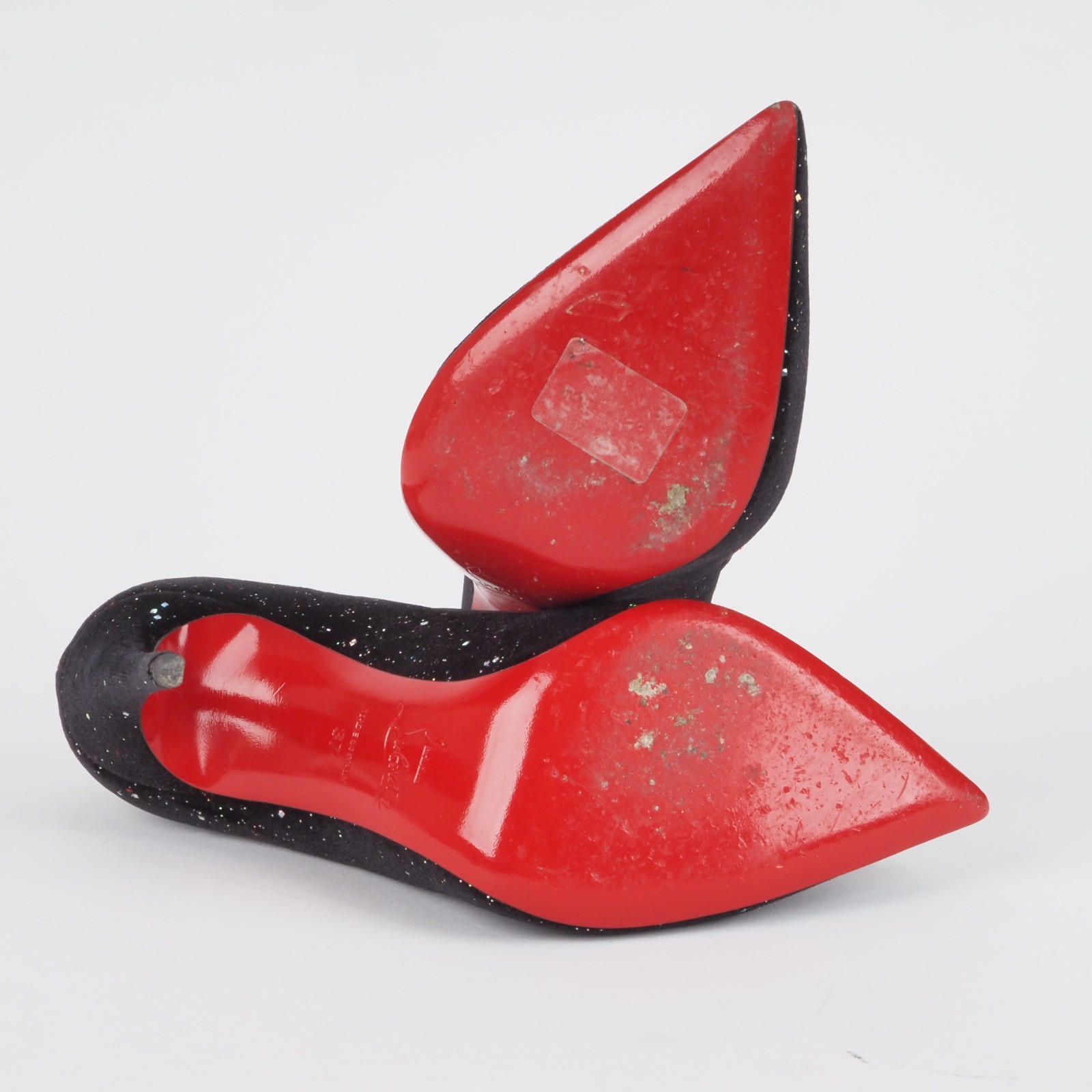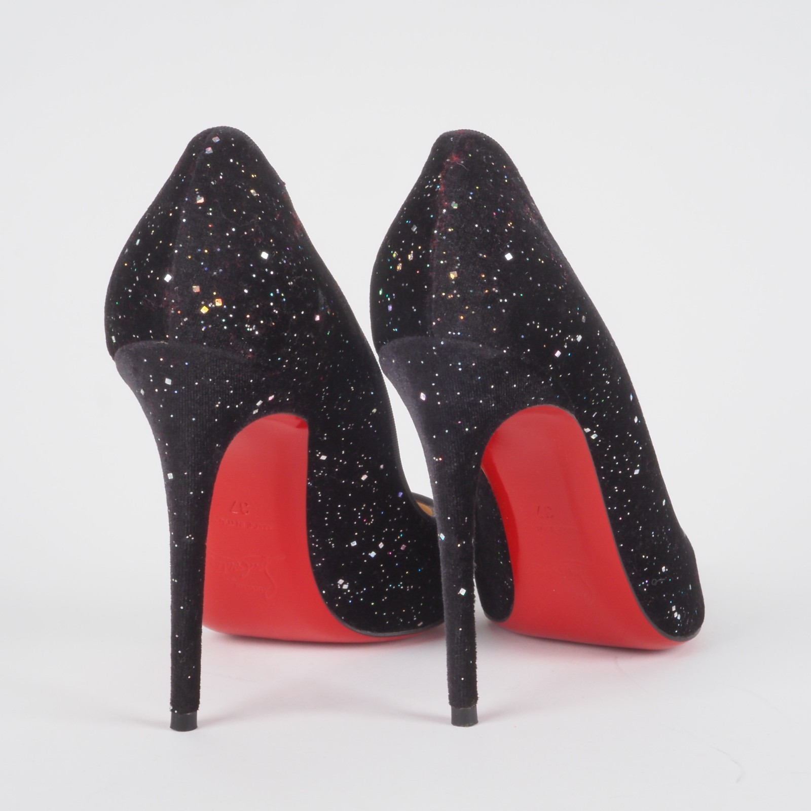 Diese Atemberaubende Galactica Pigalle Heels von Christian Louboutin sind mit Samt bezogen mit Glittern. Sie sind einmal getragen worden, unbeschädigt, mit Staubbeutel, ohne Karton., Absatzhöhe: 100 mm. Gr. 37