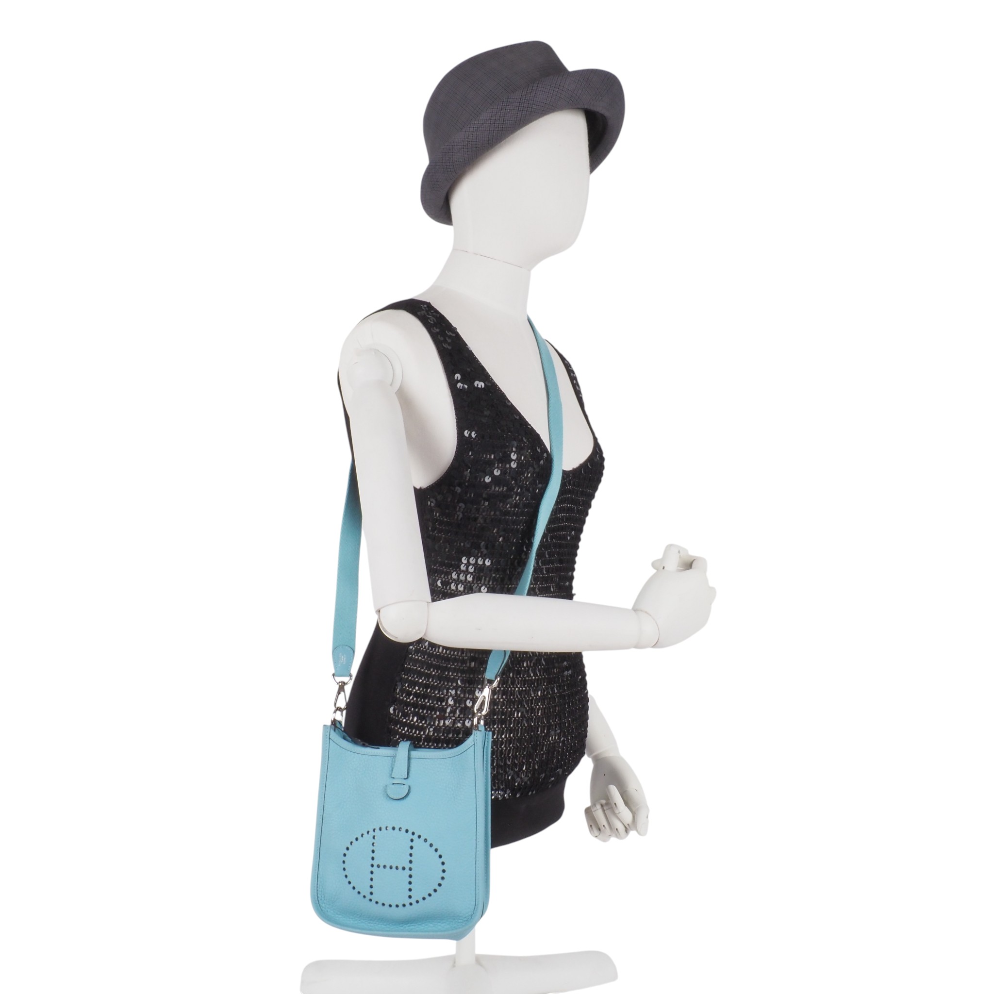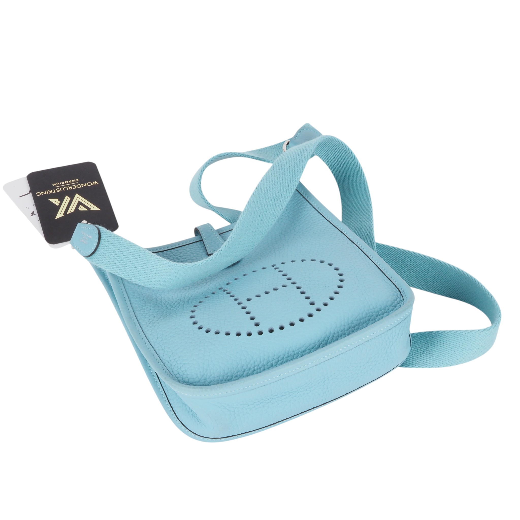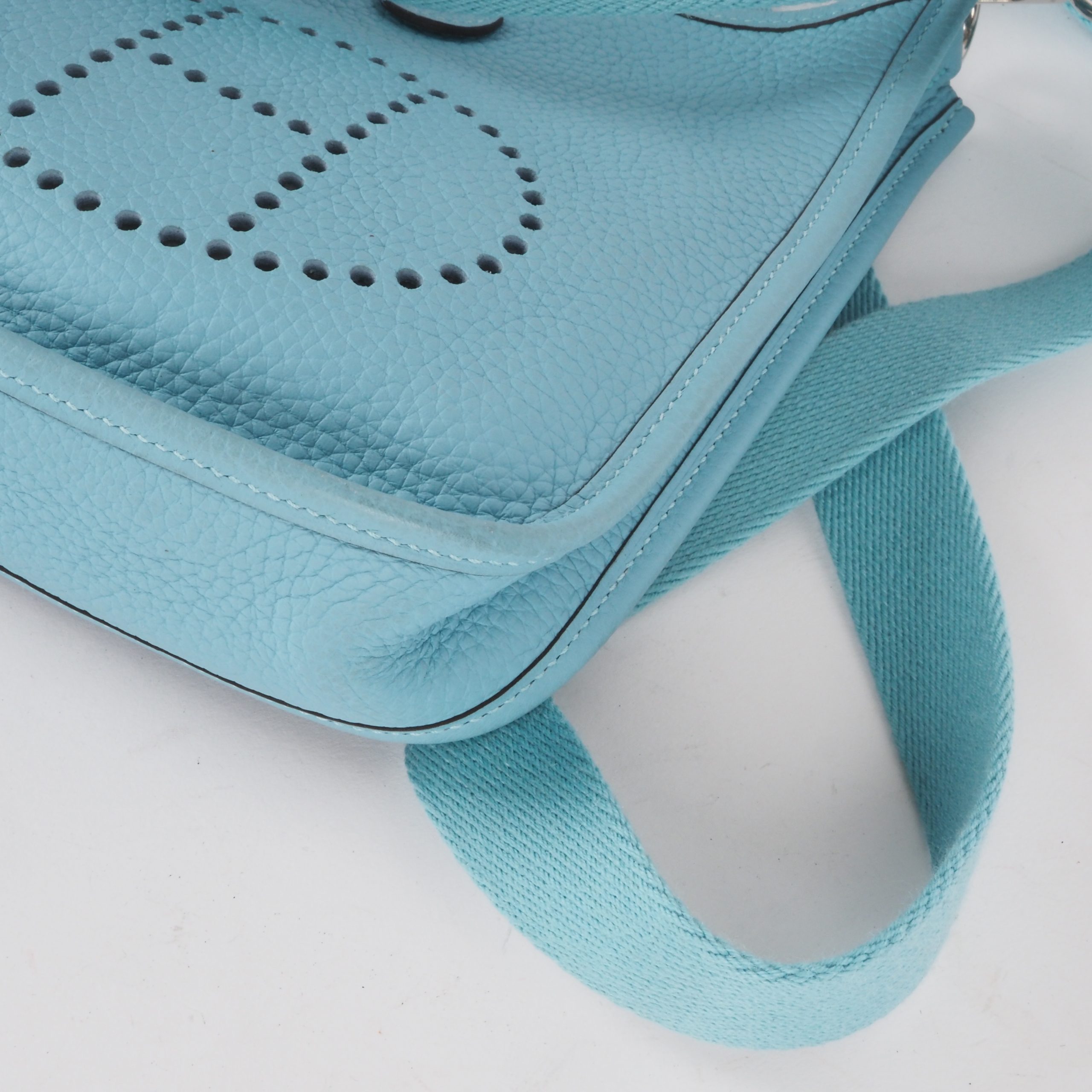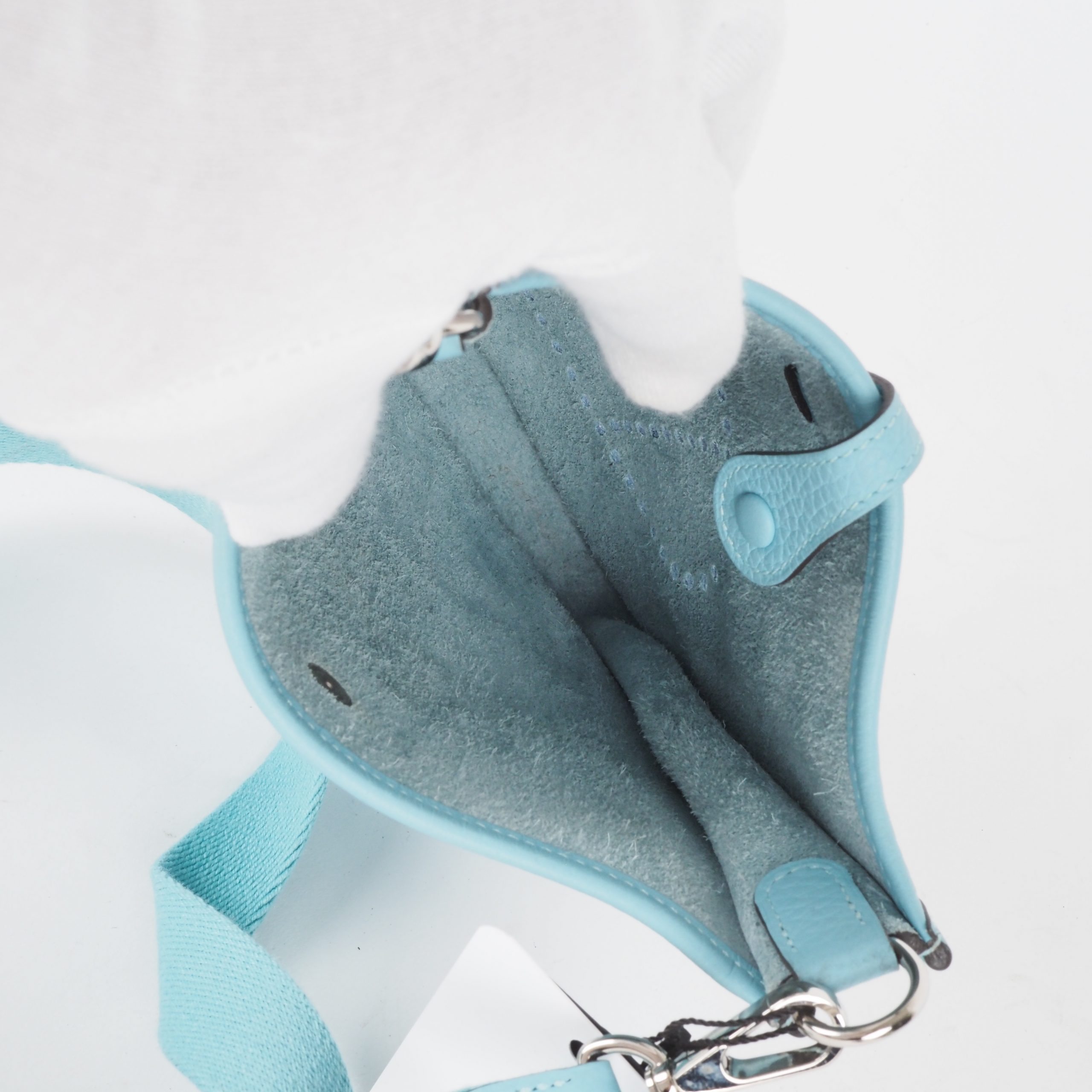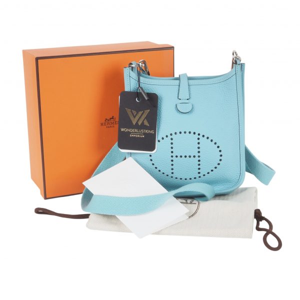 Diese wunderschöne kleine Evelyne TPM 16 von HERMÈS wurde im 2016 in Frankreich aus weichem hochwertigem Clemence-Leder handgefertigt. Die Farbe ist eine wunderschöne, sehr seltene Türkisfarbe, genannt Saint-Cyr. Die Hardware sind mit Palladium beschichtet. Innen und außen absolut gepflegt, sauber, nahezu neuwertig. Kommt mit Schulterriemen, einem Karton und Staubbeutel.