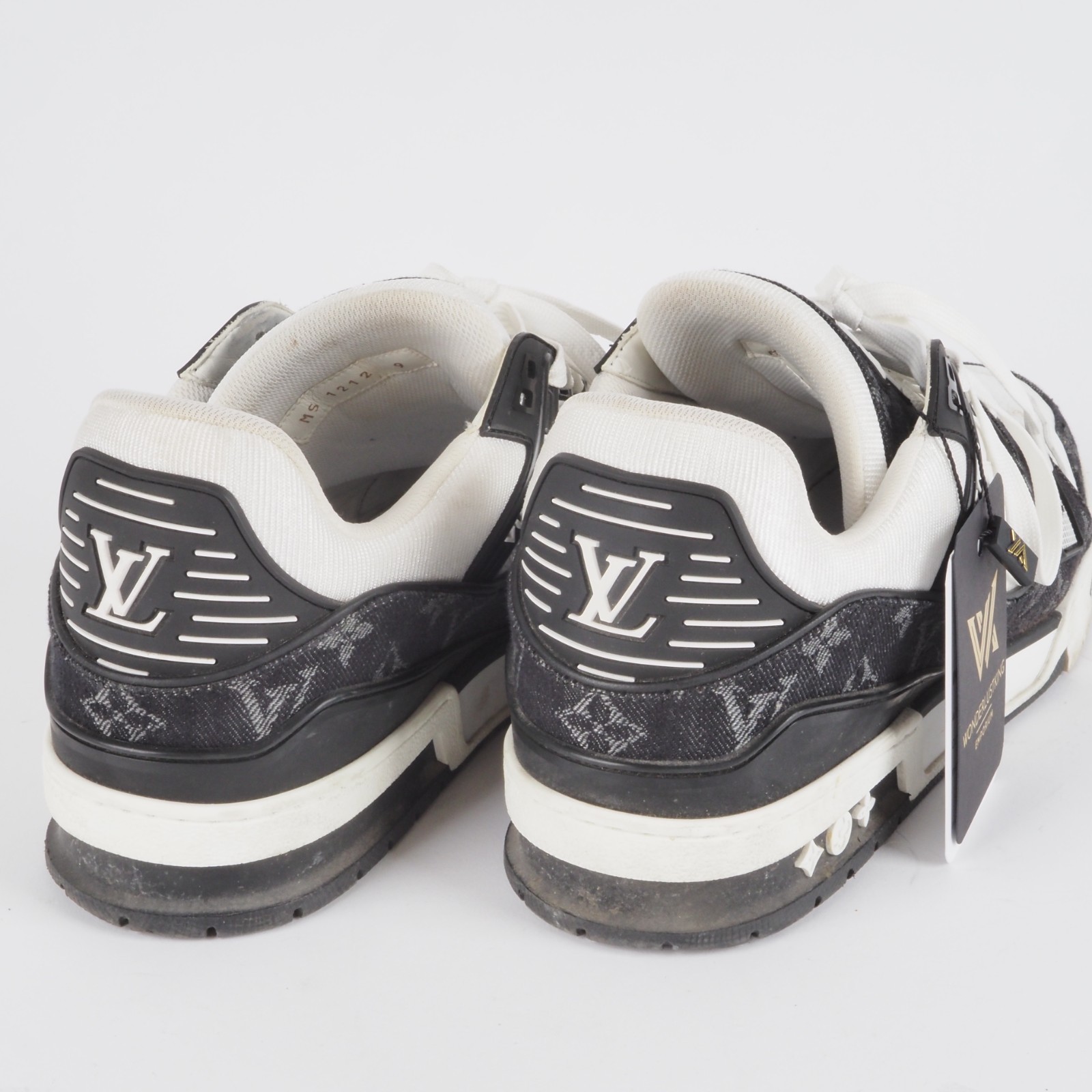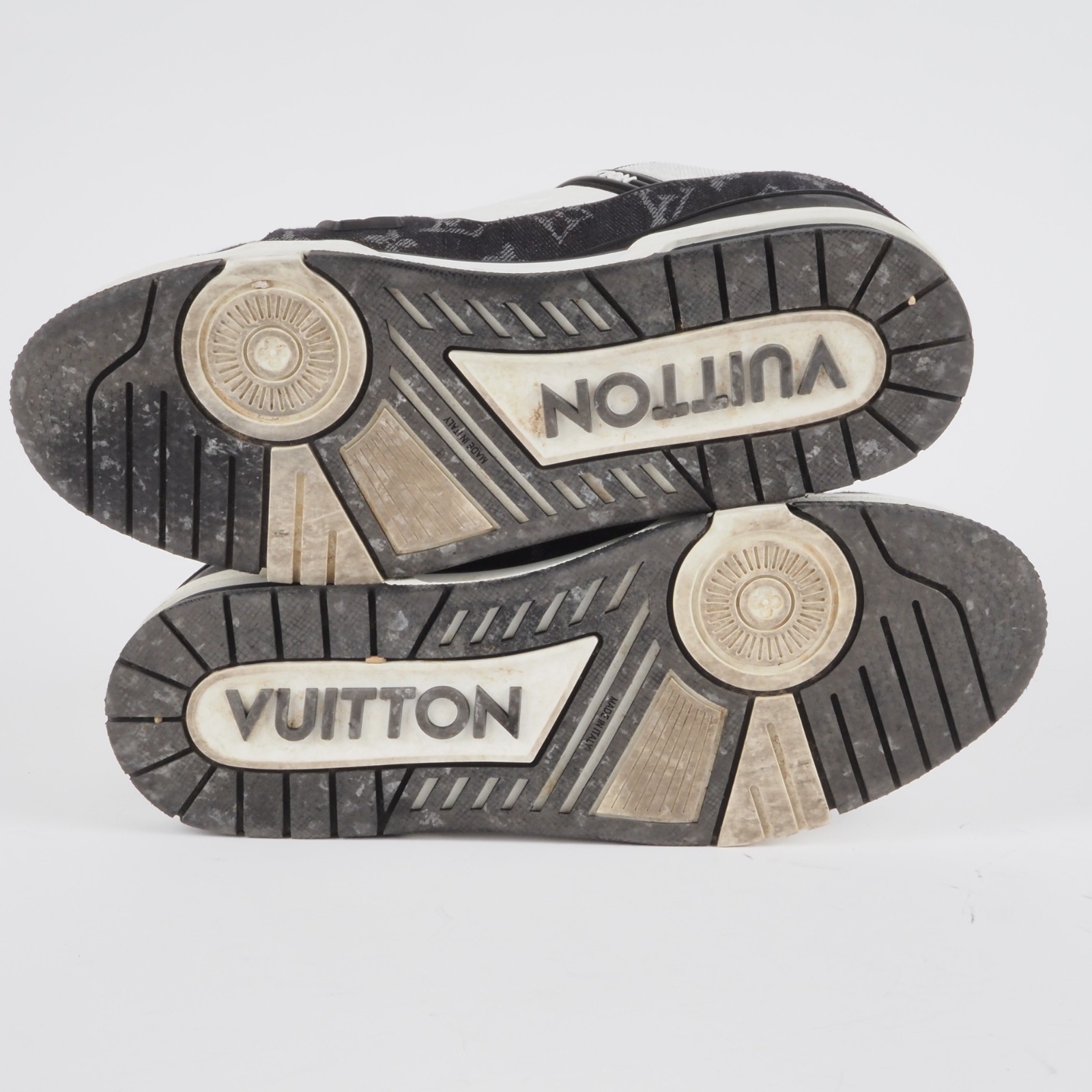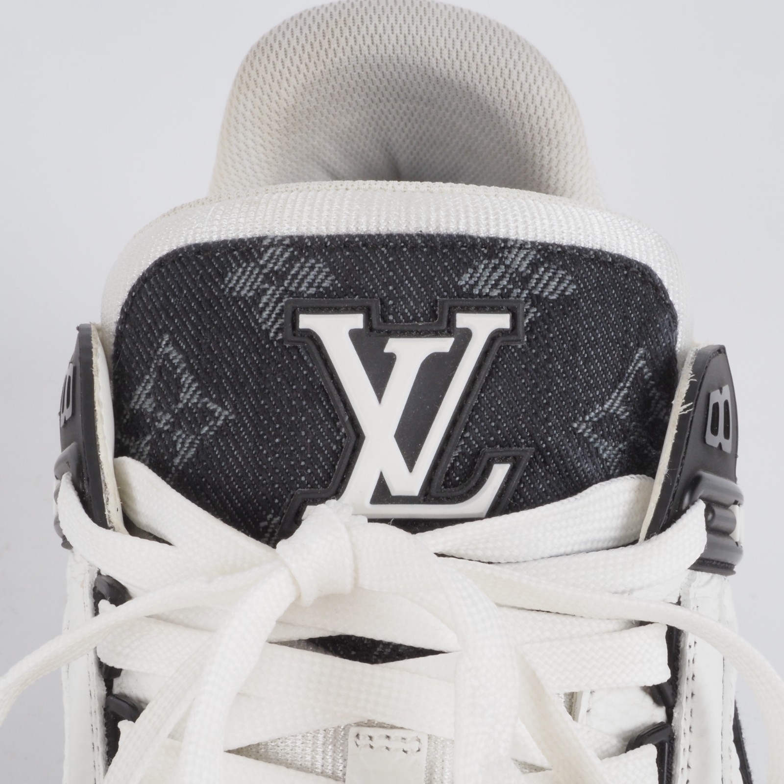 Der ikonische LV Trainer Sneaker wird diese Saison in einer Kombination von Monogram Denim und genarbtem Kalbsleder mit Monogram-Prägung neu interpretiert. Die sich abhebenden Farben und Materialien betonen die aufwendige Machart des von Basketball-Sneakern im Vintage-Stil inspirierten Designs.Hergestellt wurde in 2022 in Italien. Die Schuhe sind in gutem gepflegtem Zustand, wenig getragen. Ohne Flecken und Gerüche. Innen und außen sauber. Gr. 9 (fällt größer aus) entspricht also 44